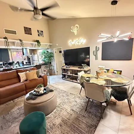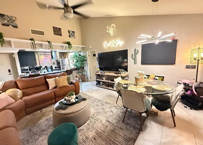 Spacious 1 Bedroom 1 Ba Family Villa zapewnia komfortowy pobyt z wyposażoną kuchnią z ekspresem do kawy/herbaty, lodówką i zmywarką do naczyń. Goście mogą zjeść kolację restauracji Karen's Cafe, w odległości 19 min spacerem. Dojazd samochodem z willi na lotnisko Palm Springs International zajmie 26 min.